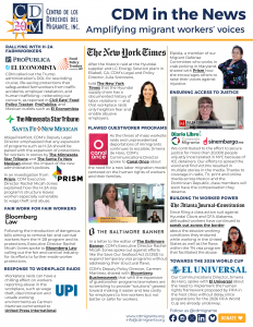 We’re proud to share a one-page roundup of the most impactful news stories from the past year that highlighted CDM’s work and amplified the voices of migrant workers.